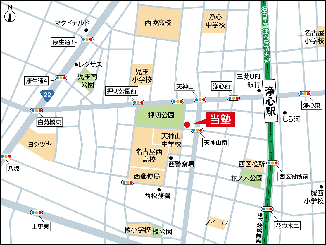 学習塾マーブルは、名古屋市西区天神山町にありますので、天神山中学校、浄心中学校、菊井中学校、榎小学校、栄生小学校、枇杷島小学校、南押切小学校、児玉小学校、上名古屋小学校、城西小学校、なごや小学校のエリアを中心とした児童・生徒を対象としていますが、その他の西区内を始めとして、どちらにお住まいの方でも通塾いただけます。その他、国私立小中学校に通学の方も歓迎いたします。また、その他の地域の方でも、オンライン授業等の相談にも応じますので、お気軽にご連絡ください。