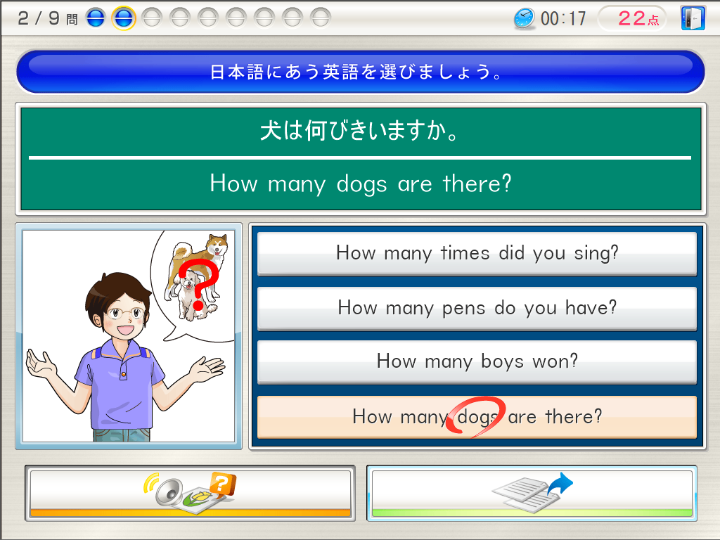 ミニゲーム風の問題で楽しく英語を学び、自然とアルファベット、単語、発音などをマスターした後は、英語を「聴く」耳を育て、「読む」脳を育て、「書く」ことができるように、段階を踏んで学習できます。